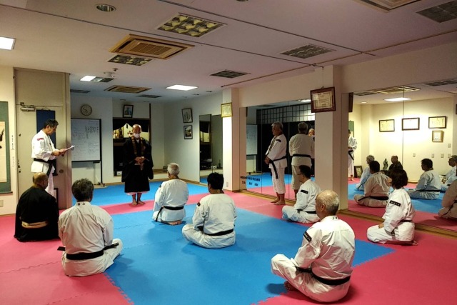 奉納演武の後 道院長の閉会の辞にて、無事に令和7年度 達磨祭を収めることができました。