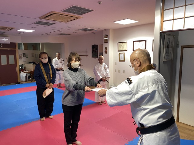 修練をお休み中にて私服にての授与式となりました。